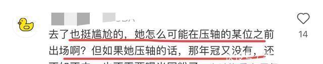 网友:去了也尴尬,她压轴的几率不大,毕竟赵露思年冠,但要让她在赵露思前面出场有点掉咖。